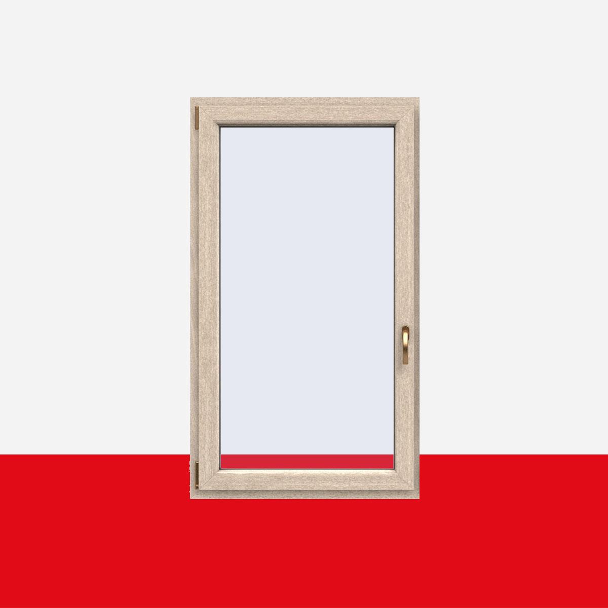 Kunststofffenster Dreh-Kipp mit 1 Flügel, doppelt oder dreifach verglast inkl. Qualitäts-Pilzkopfverriegelung & 5-Kammer Profil-System. Innen: Sheffield Oak Light Renolit F456-3081 Aussen: Sheffield Oak Light Renolit F456-3081