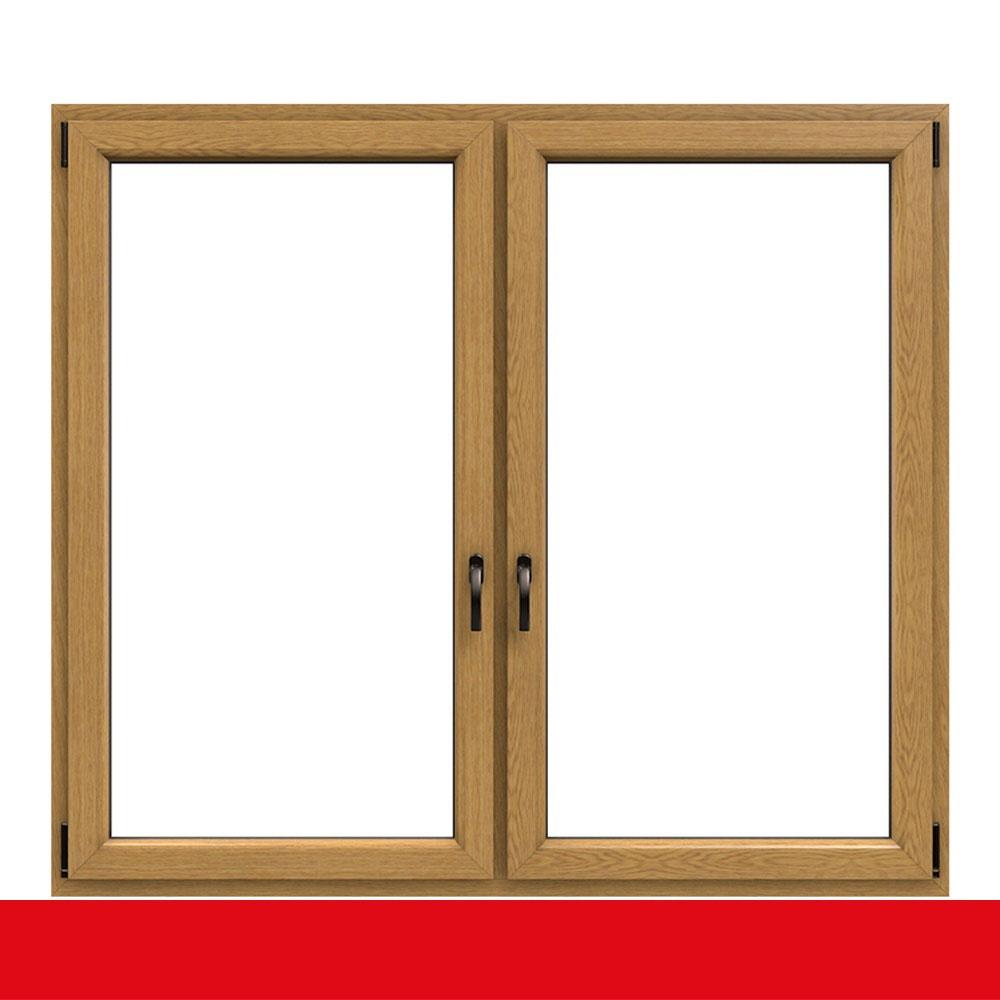 2-flügliges Kunststofffenster Eiche Natur (Innen und Außen) Dreh-Kipp / Dreh-Kipp mit Pfosten