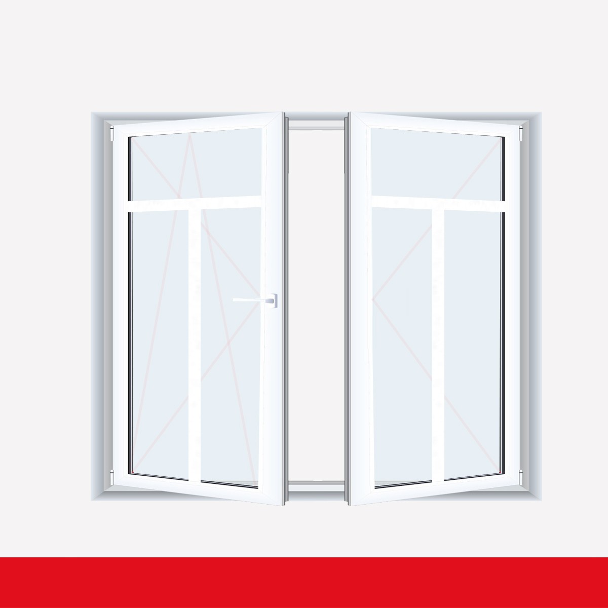Sprossenfenster Typ 3 Felder Weiß 2 flg. Stulp Kunststofffenster 26mm T-Sprosse